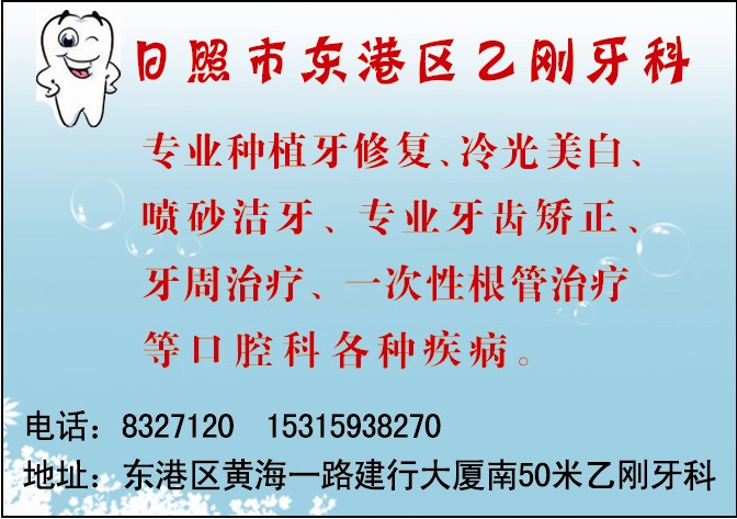 地址:东港区黄海一路建行大厦南50米乙刚牙科