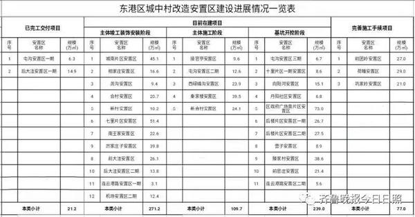 日照街道相家庄、城南,香河街道七里、新村,秦楼街道南王家村、厉家庄子等12个安置区、271.2万平方米完成主体施工,进入内部装饰装修阶段;