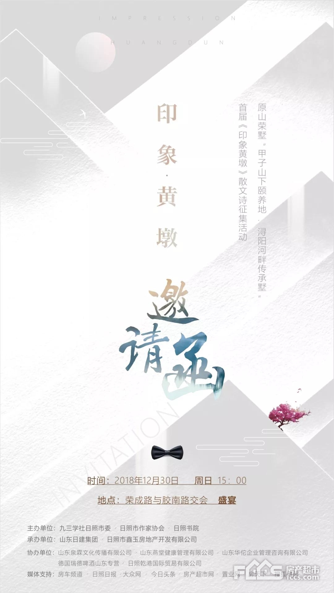 “原山荣墅”杯首届“印象·黄墩”诗文征集活动将于2018年12月30日下午15:00在日照市荣成路与胶南路交会处举行启动仪式,凡最终选出在《印象·黄墩》刊物上刊发优秀作品作者,均可获得原山荣墅10000元购房优惠券、荣誉证书、《印象·黄墩》样刊1本。活动详情请关注日照鑫玉房产微信公众号了解。