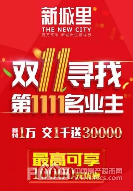 你听说了吗?新城里正在全城寻找第1111位业主。双11期间,第1111位在新城里成交的业主,将获得10000元的购房补贴。购房就有惊喜,1111已经临近, 快来吧,或许,幸运就会降临在你身上。