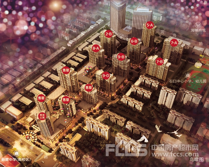 锦华广场项目位于海纳商城对过,南接天津路,北靠黄海一路,总建筑面积40万㎡,由2栋5A甲 级写字楼、1栋精英公寓、12栋Art Deco风格的品质高层住宅、一条儿童主题BLOCK漫步街区组成。项目目前在售房源为二期9-D#、9-B#、8-A#楼及三期2-B#、5-A#及6-B#楼,户型面积79-121平米,均价约5800元/㎡,现在购房还可享双重优惠——农业户口直补2万元、拆迁户每平米补助300元优惠。